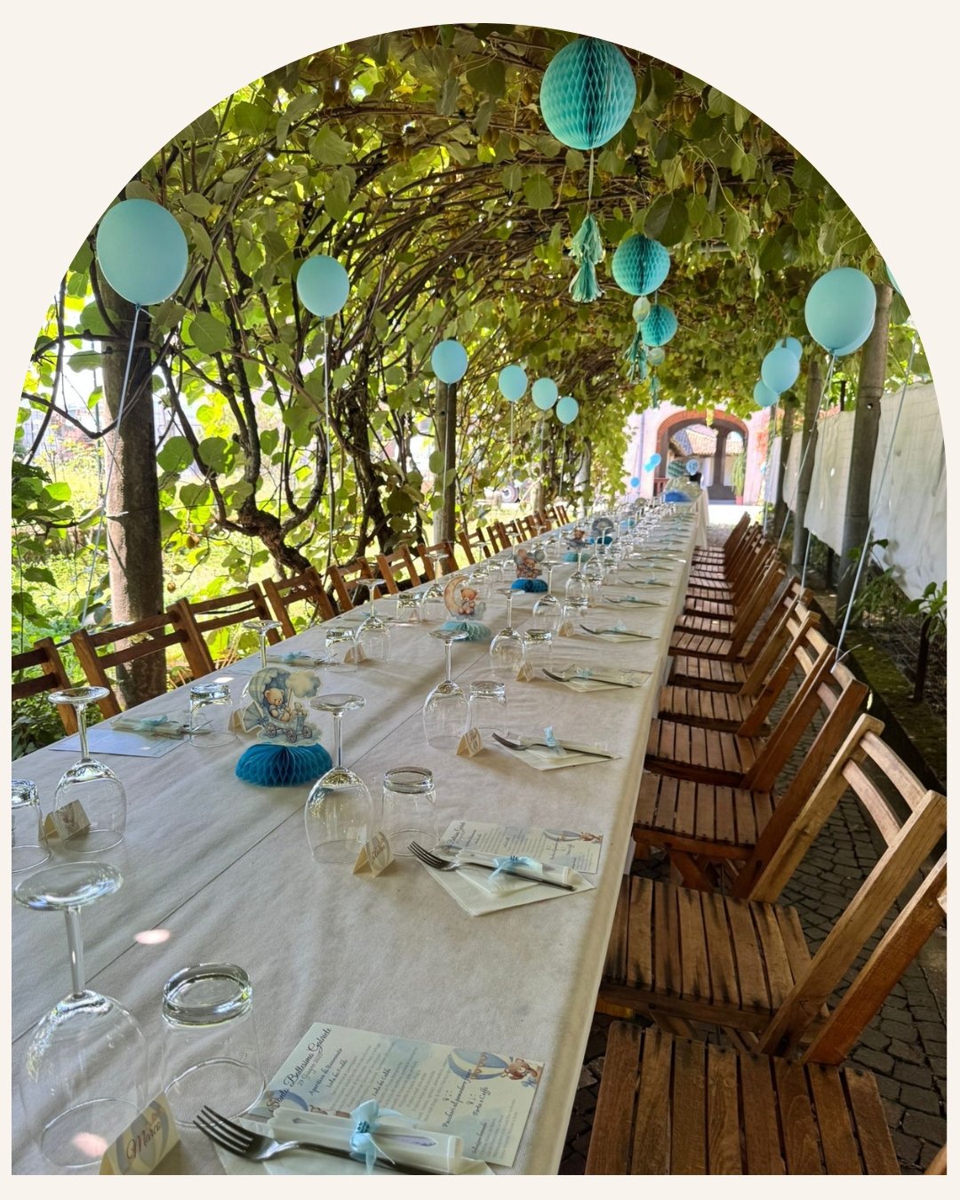 Ogni allestimento eventi privati a Bergamo nasce dall’ascolto profondo delle tue esigenze reali. Il compleanno di tuo figlio non è uguale a quello del vicino, il tuo battesimo non è una replica vista altrove. Ogni evento ha la sua personalità e merita un allestimento che la racconti davvero. Ascolto chi sei, cosa ti emoziona, cosa ti rappresenta.